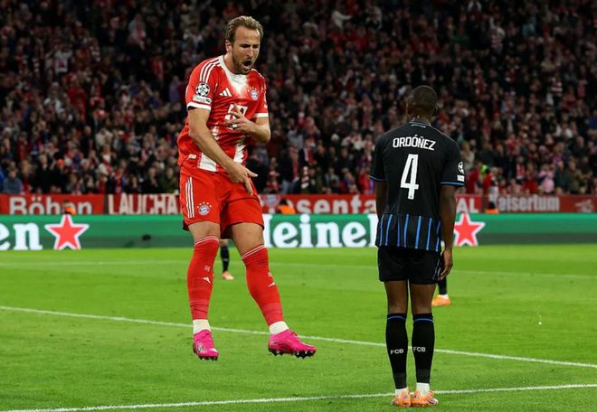 雷速体育10月23日讯 英格兰前锋哈里·凯恩又进球了。欧冠联赛阶段第3轮,拜仁慕尼黑主场4-0大胜比利时球队布鲁日,延续本赛季全胜势头。该场对决中,凯恩第14分钟接应莱默尔横传推射空门命中,力助拜仁慕尼黑将场上比分扩大为2-0。