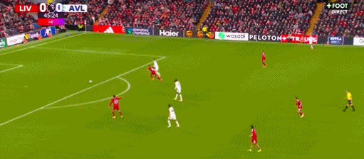比赛开始后,维拉便展现出反击为主的气势;第5分钟,罗杰斯外围转身绕过防守起脚兜射击中立柱弹开;第19分钟,卡什右路前插小角度不停球抽射,马马尔达什维利扑了一下再次击中门框弹出!利物浦上半场的射门数量其实是维拉的2倍,只是射门质量着实不高;第38分钟,罗伯逊左侧定位球旋入禁区,科纳特甩头攻门直接偏出。
